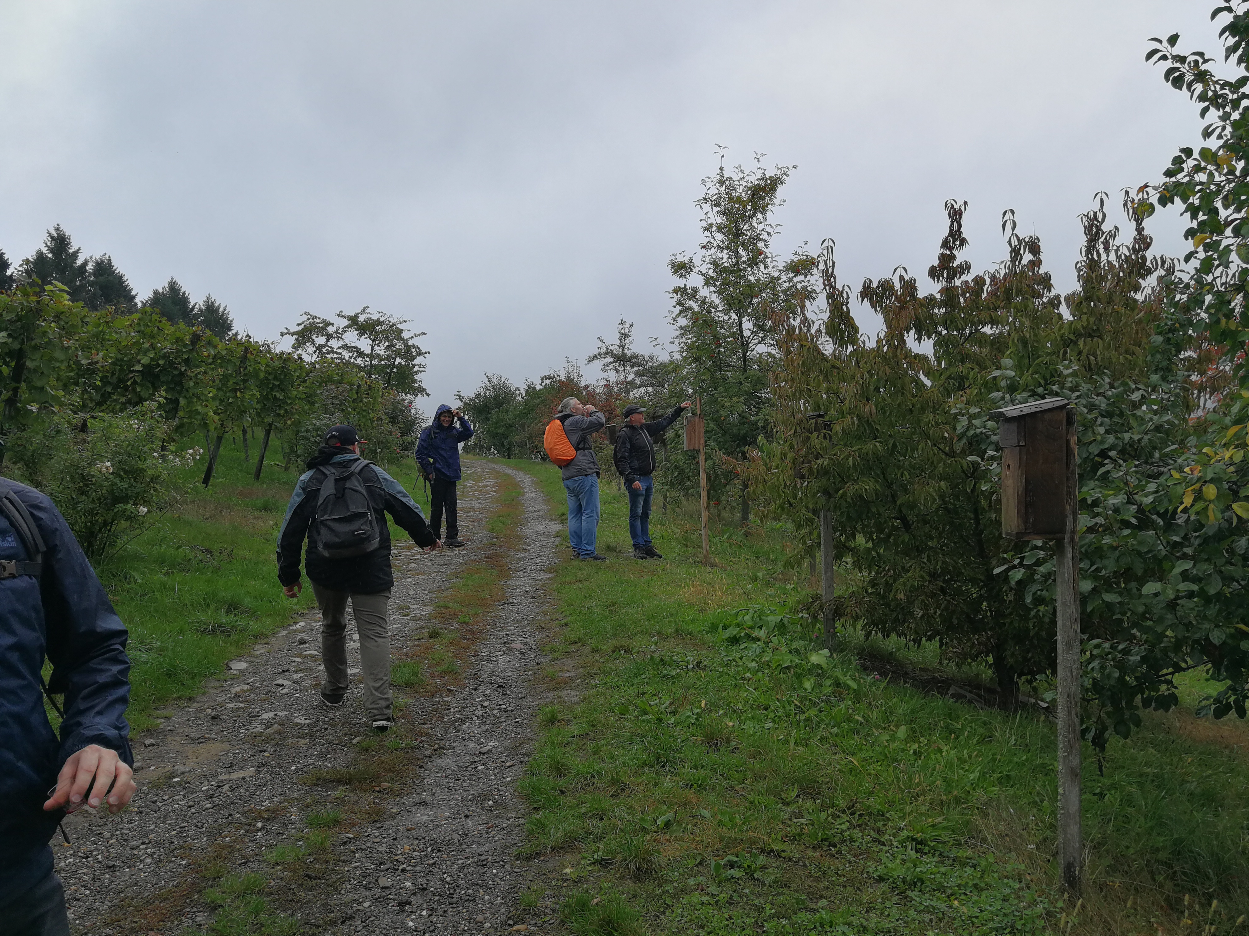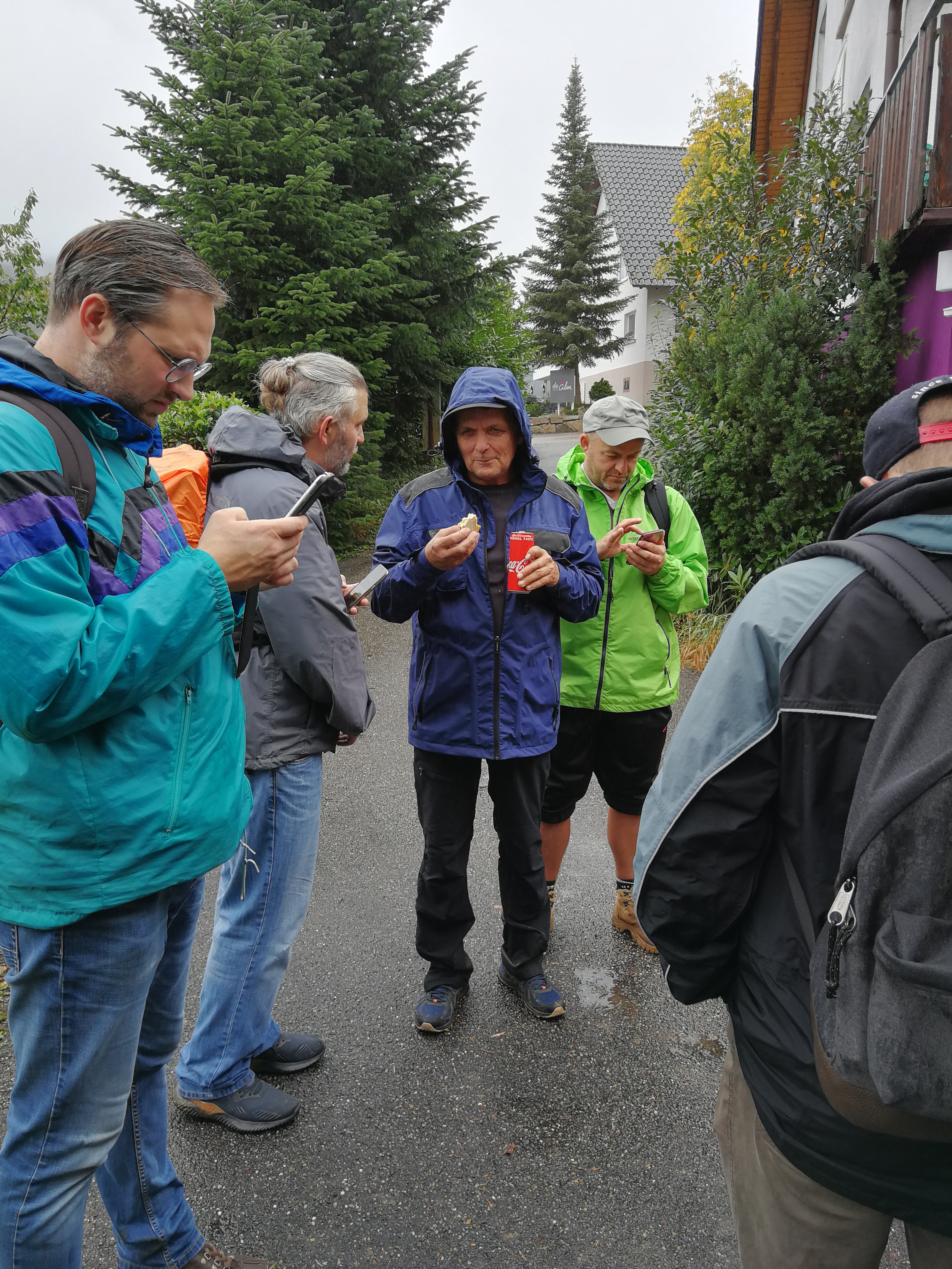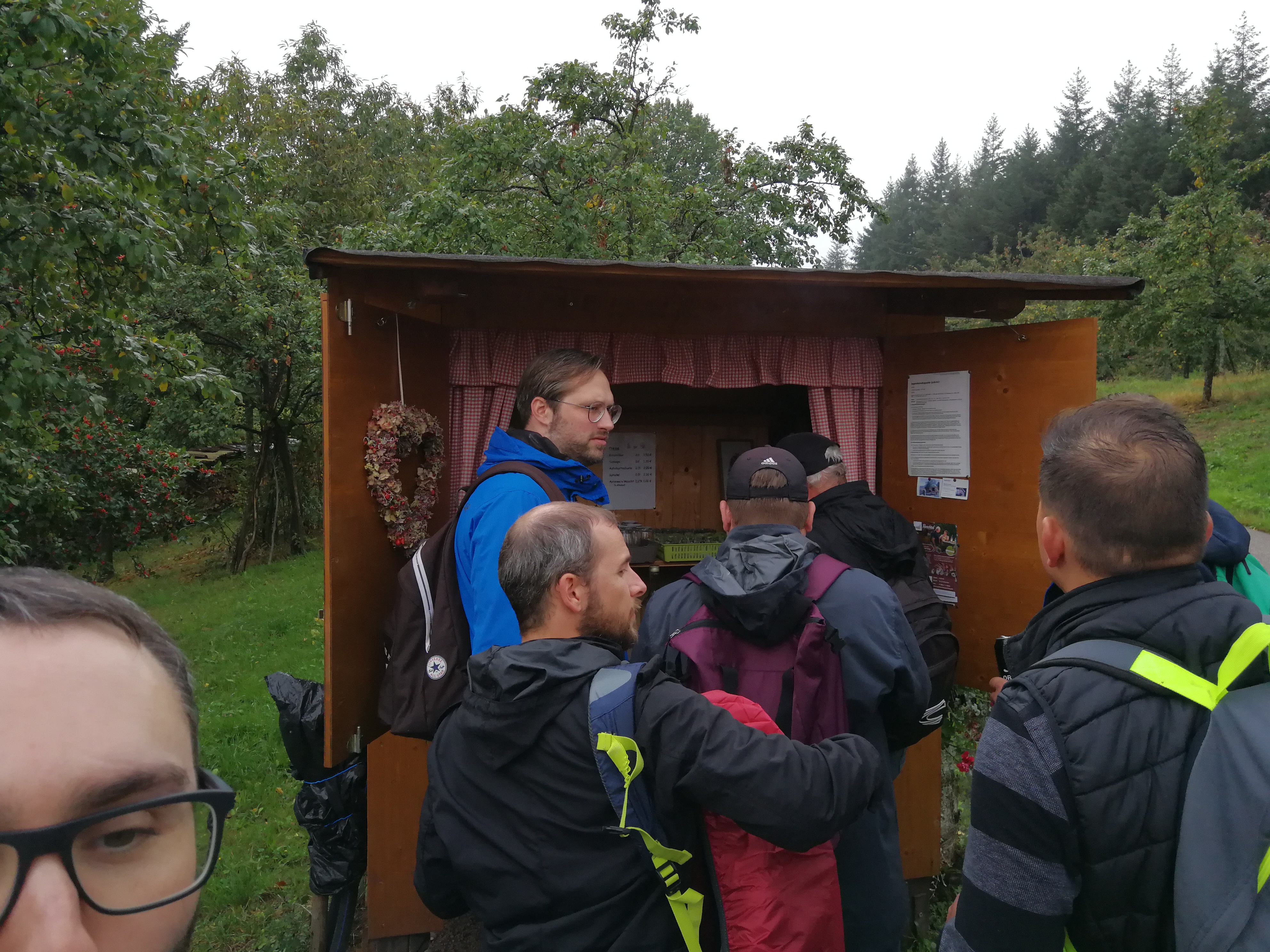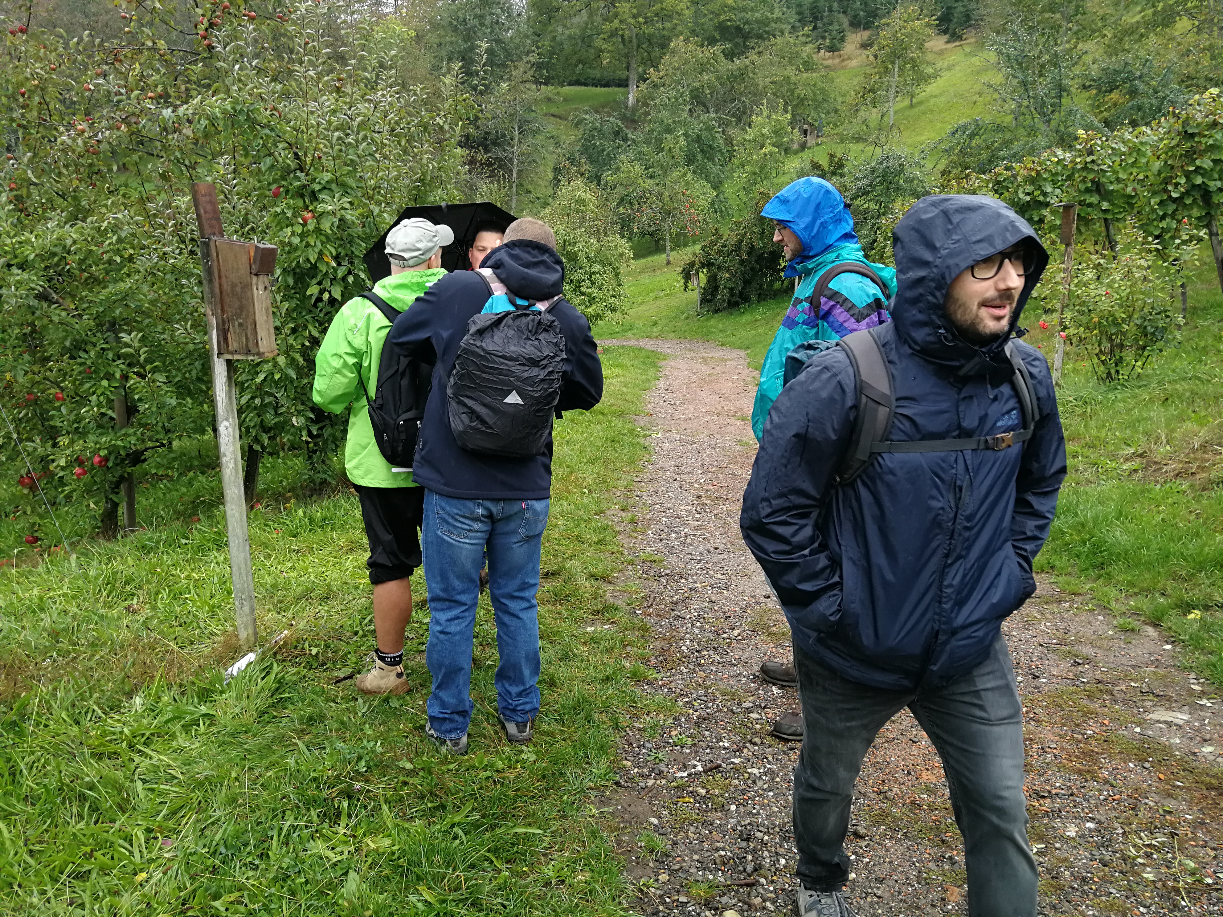 Mit Regenschirmen bewaffnet durchquerte man die 14 km Wald und Wiese und scheute auch manches Schnäpschen nicht.