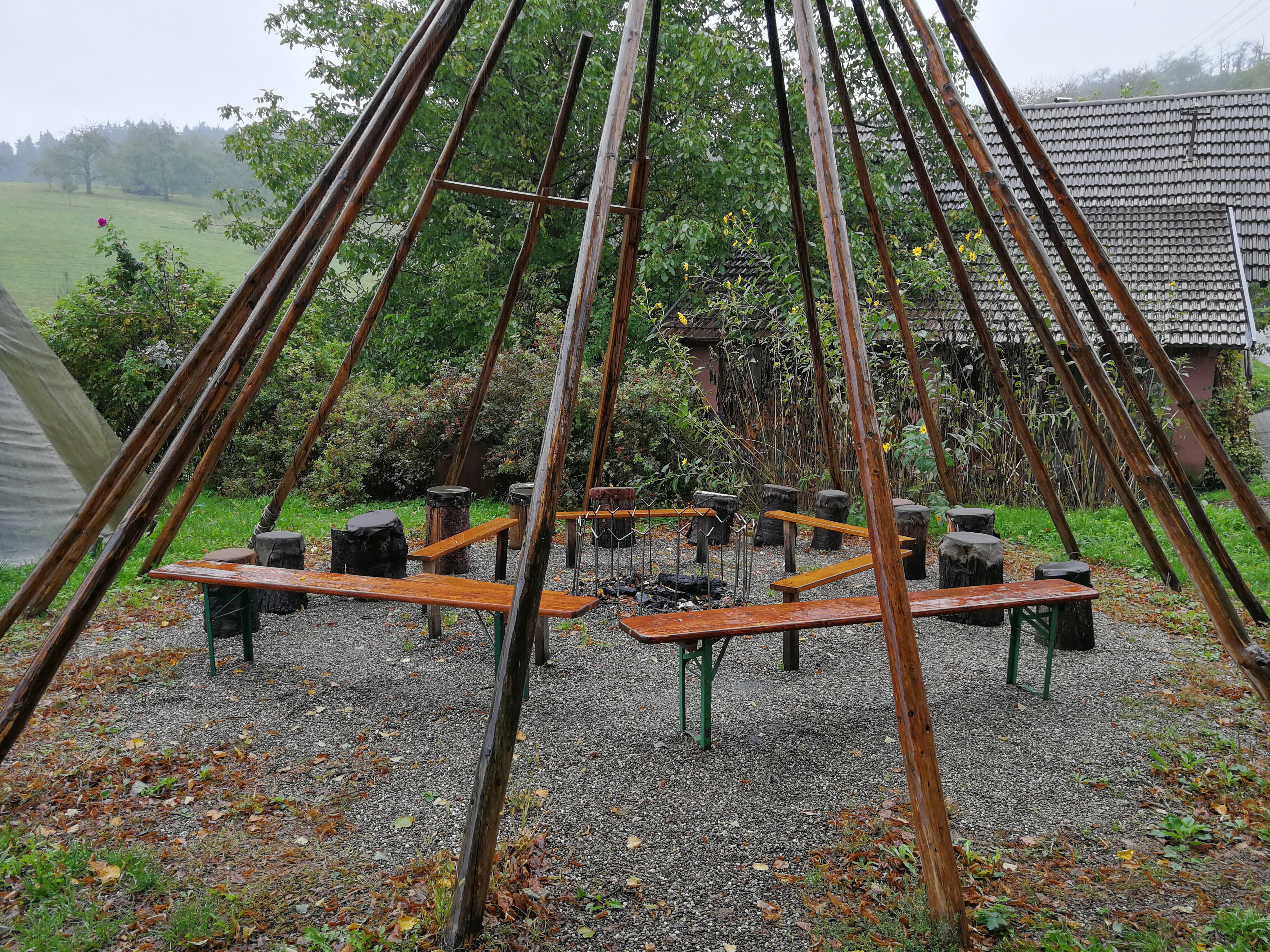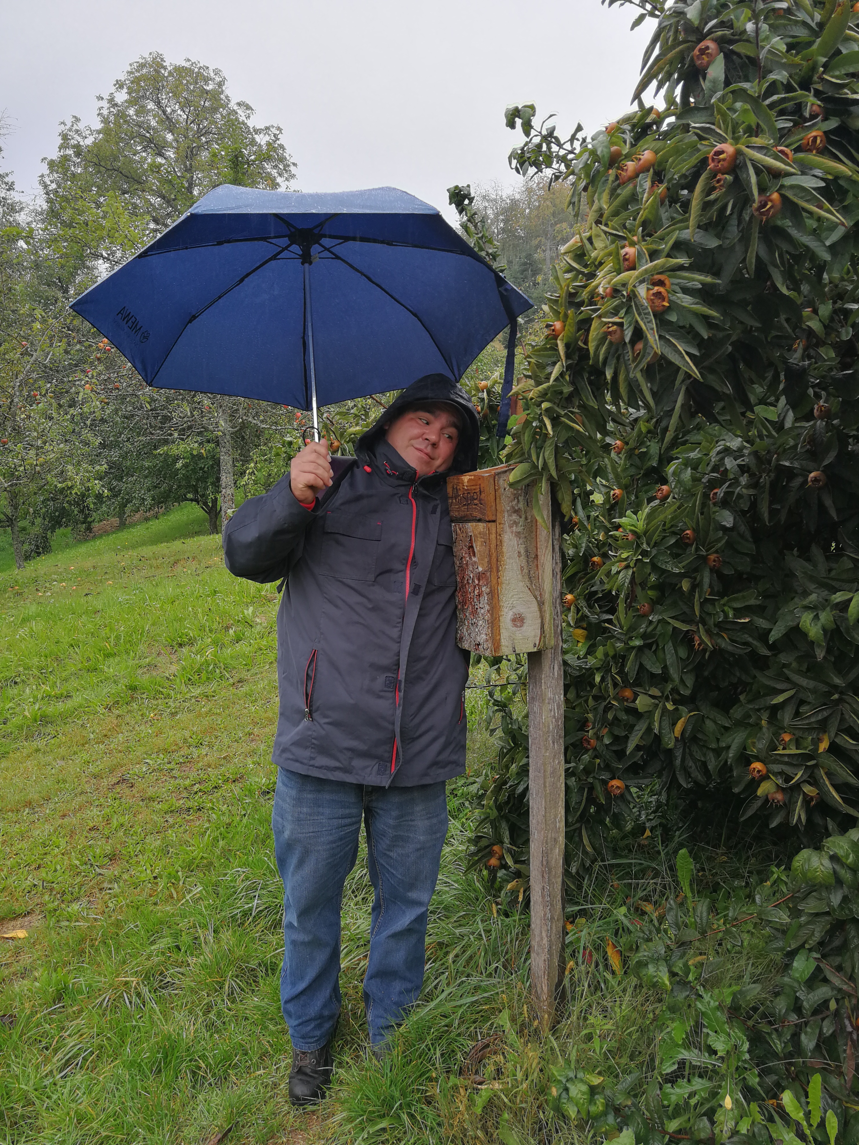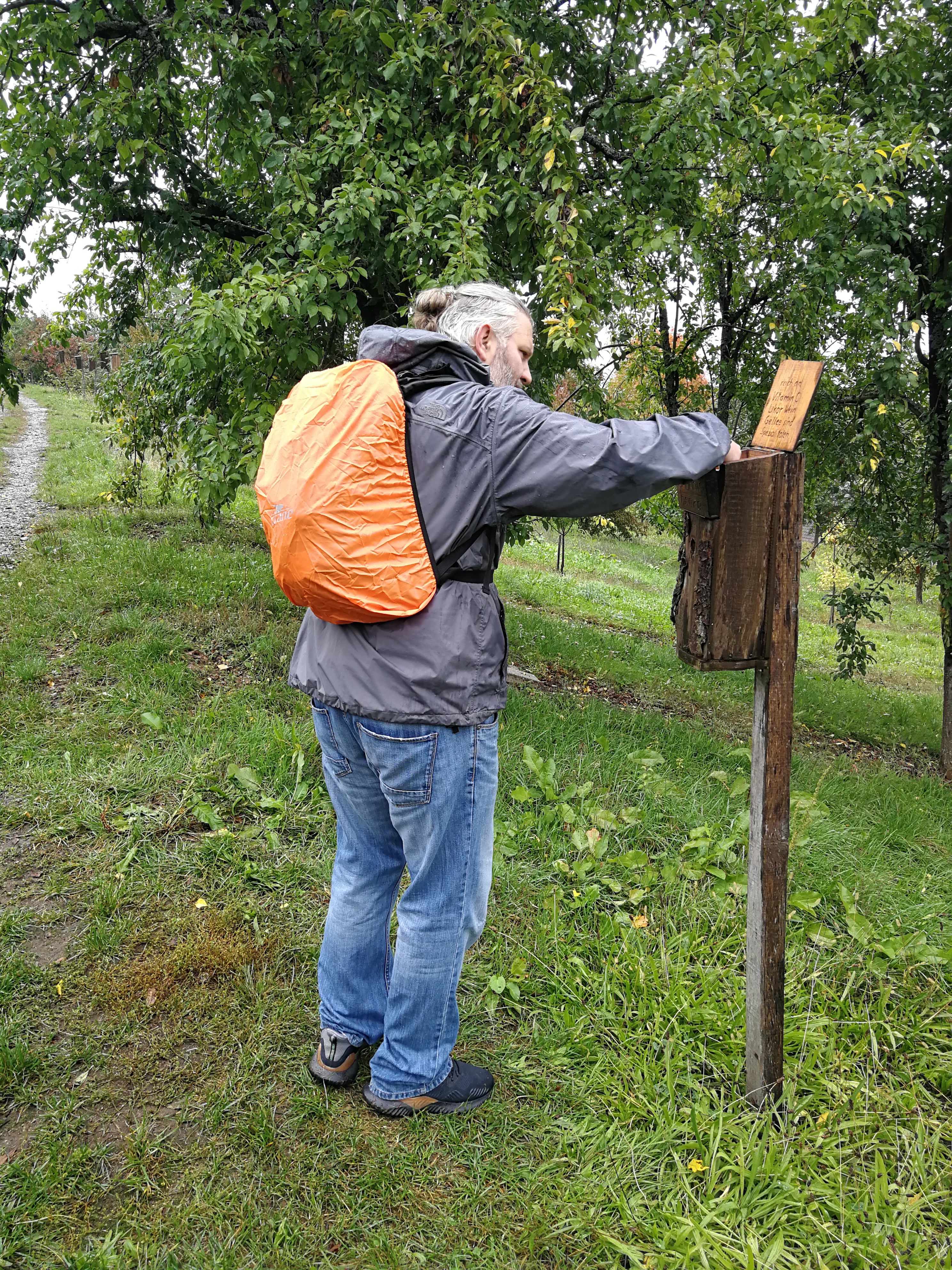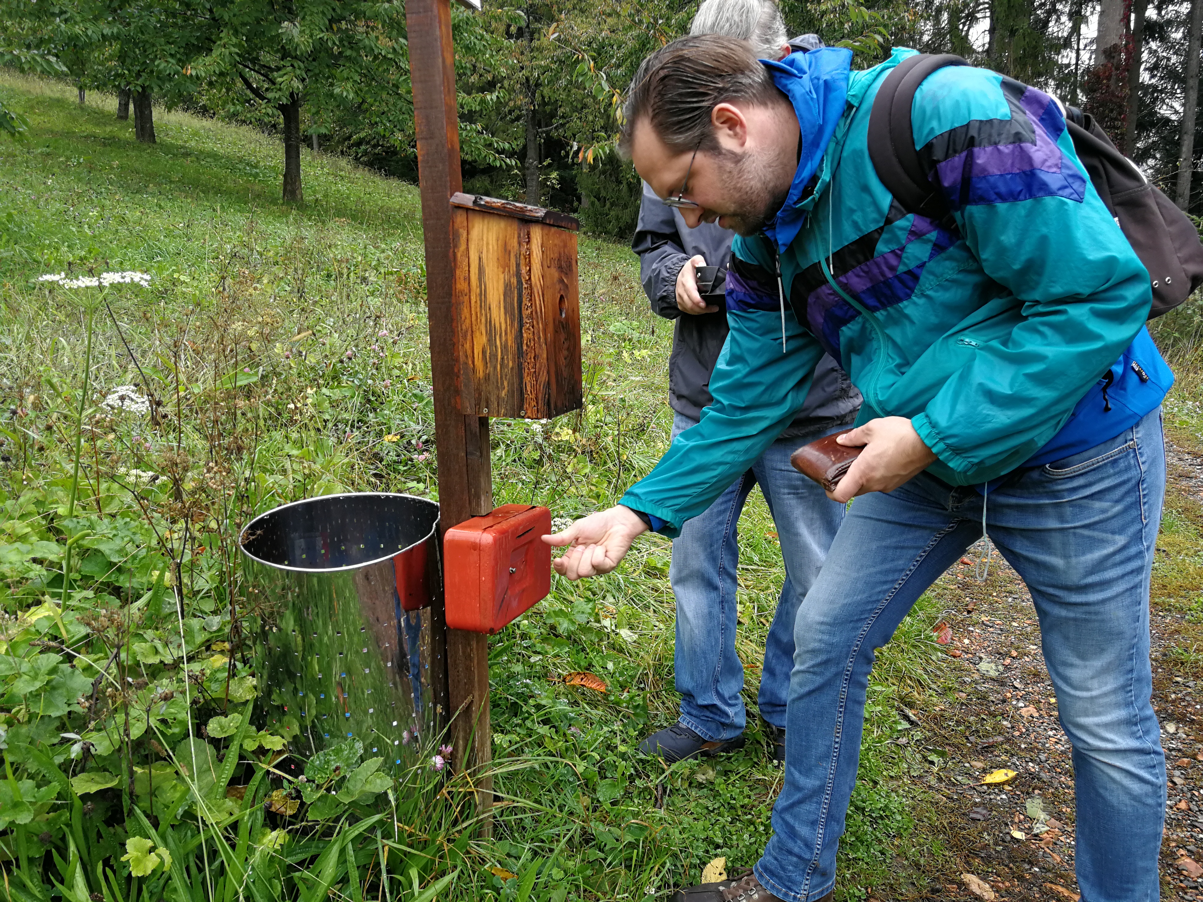 Mit Regenschirmen bewaffnet durchquerte man die 14 km Wald und Wiese und scheute auch manches Schnäpschen nicht.