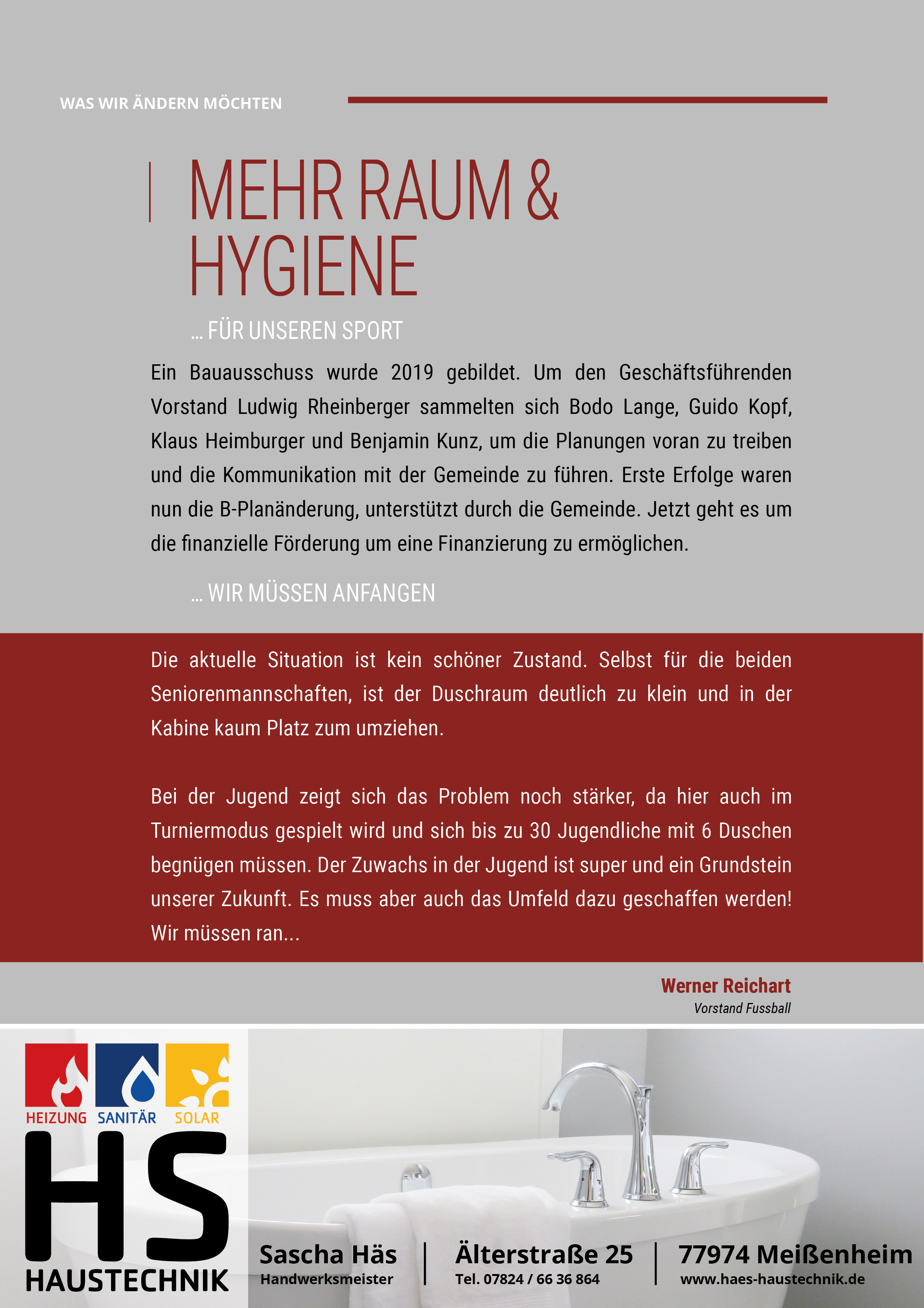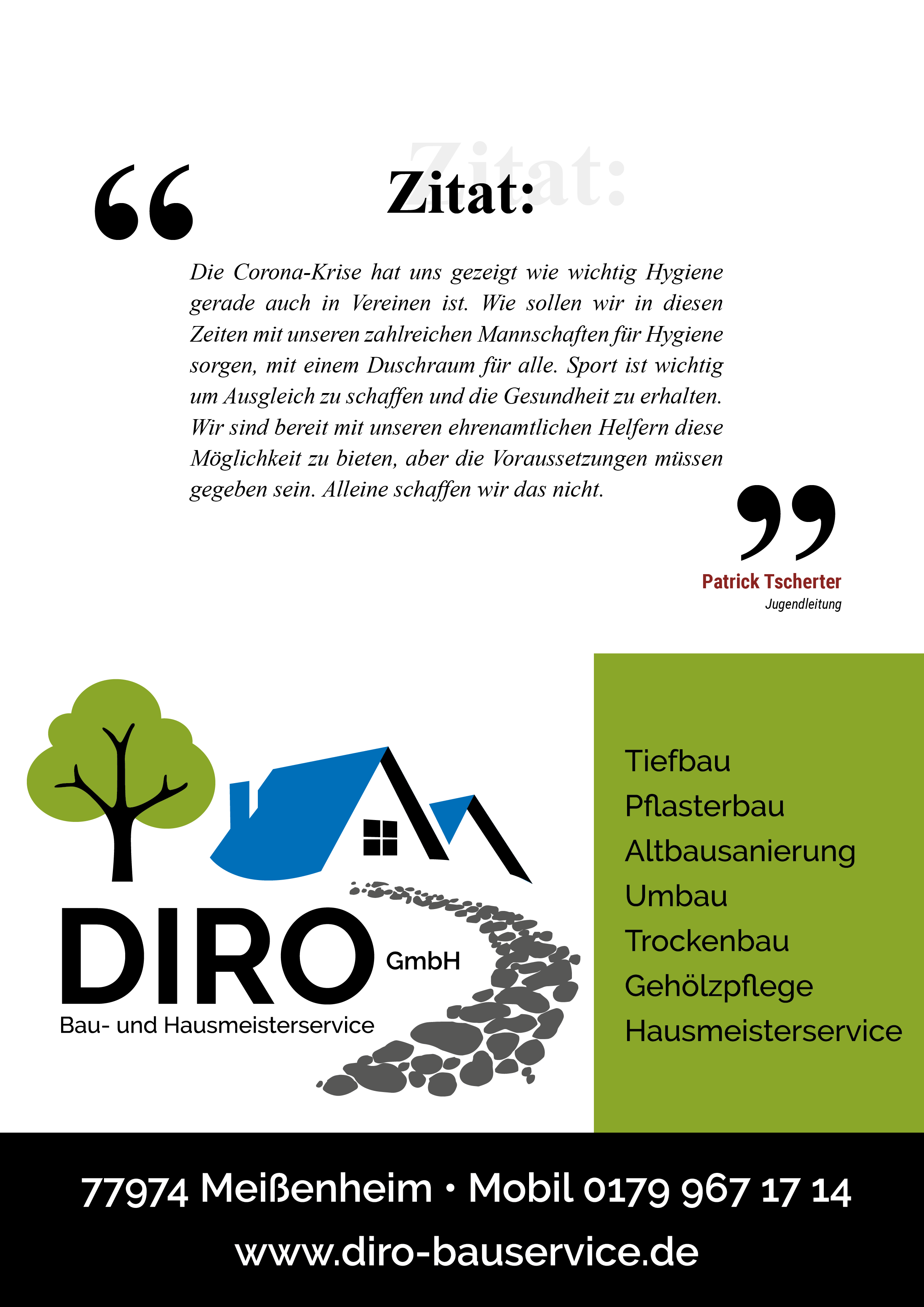 Dass dieser Zustand des Umkleidebereichs nicht tragbar ist, zeigt uns Corona mit voller Härte. Unsere Mannschaften überlassen den Gastmannschaften den Kabinenbereich mit den einsetzbaren 4 Duschen und ziehen sich in der Gaststätte um. Zum Duschen gibt es nur die Möglichkeit eine aufwändige Zwischenreinigung durchzuführen oder den Duschvorgang zuhause vorzunehmen. Was wir hier wirklich gerne erwähnen ist, dass unsere Mannschaften inkl. Übungsleitern die Situation ohne Kritik hinnehmen und das Beste daraus machen!!! Danke dafür