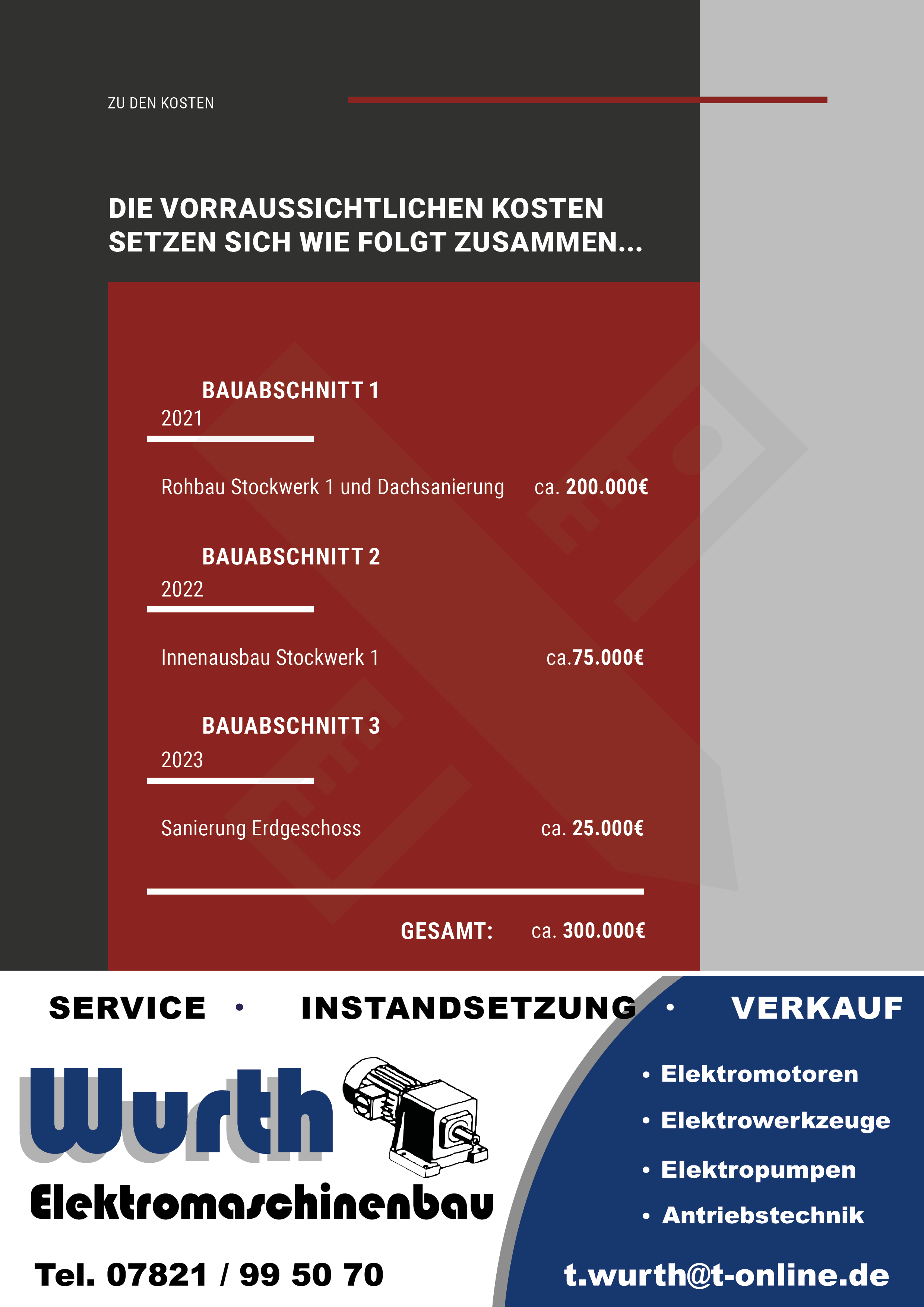 Die Gelder werden ausschließlich für die Umbaumaßnahmen verwendet!