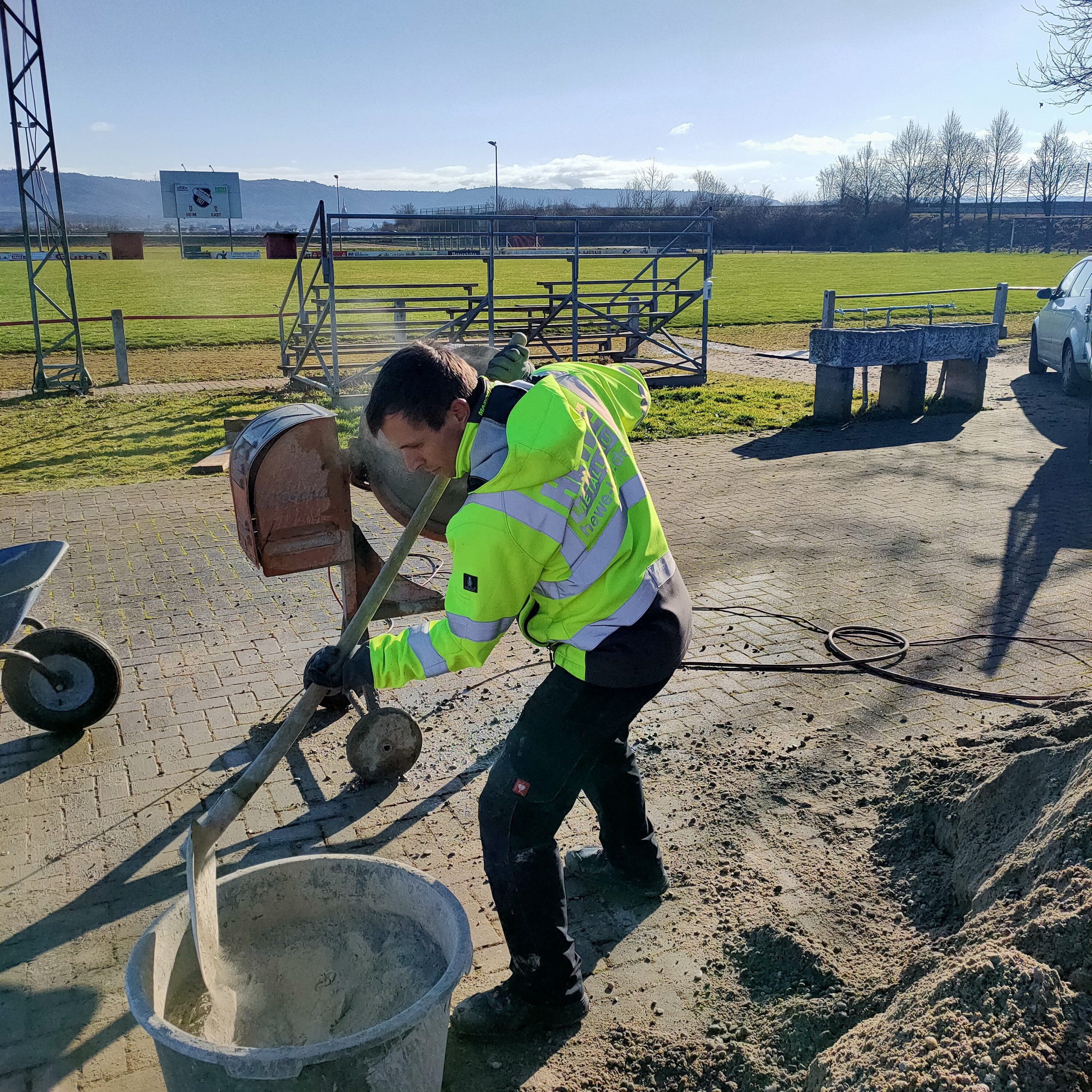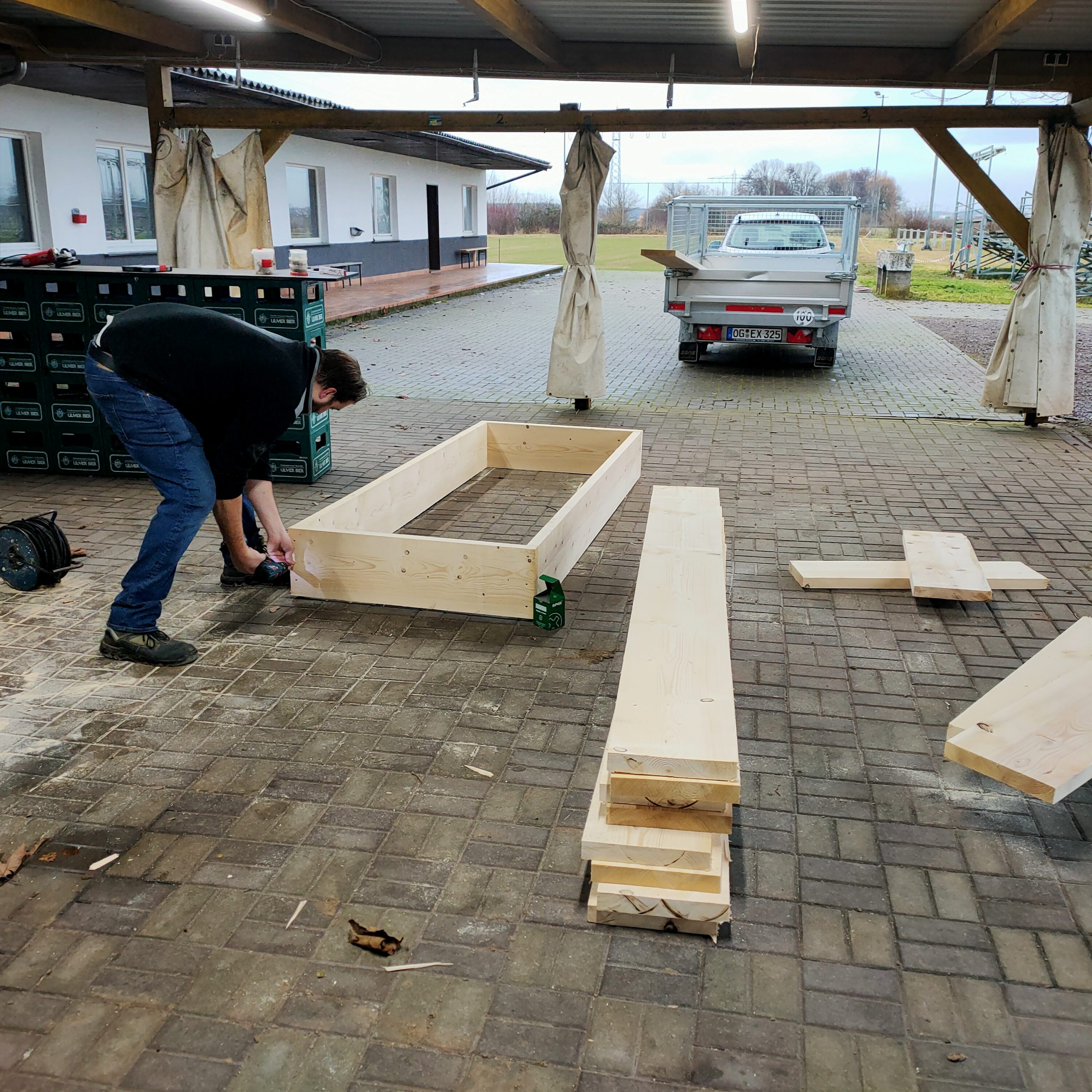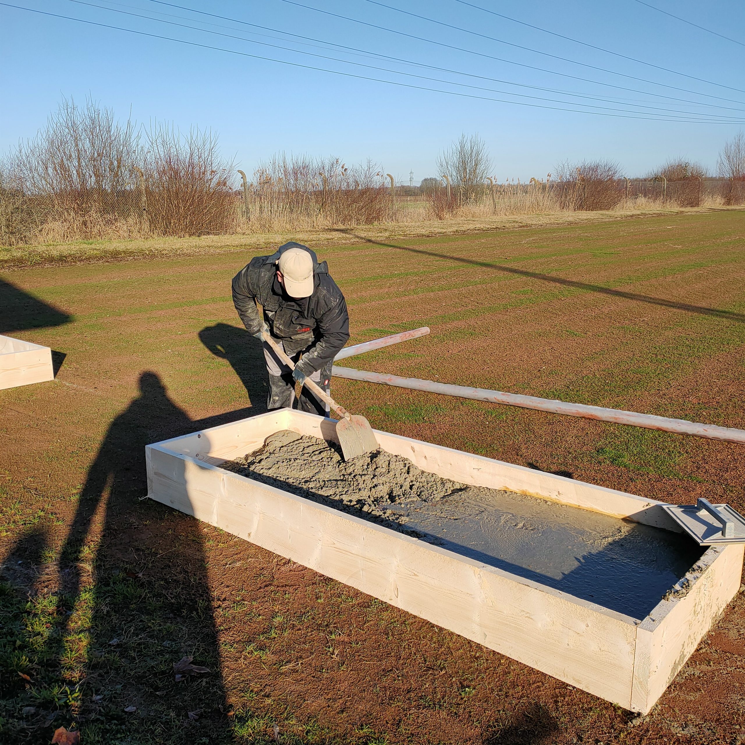 Wichtig war uns hier, dass der Container in Vereinsbesitz übergeht, damit wir kein Geld investieren, dass danach das Weite sucht.  Der Container wird uns langfristig, auch nach dem Umbau gute Dienste leisten. Zum Start wurden Blöcke betoniert um den Container nivelliert absetzen zu können.