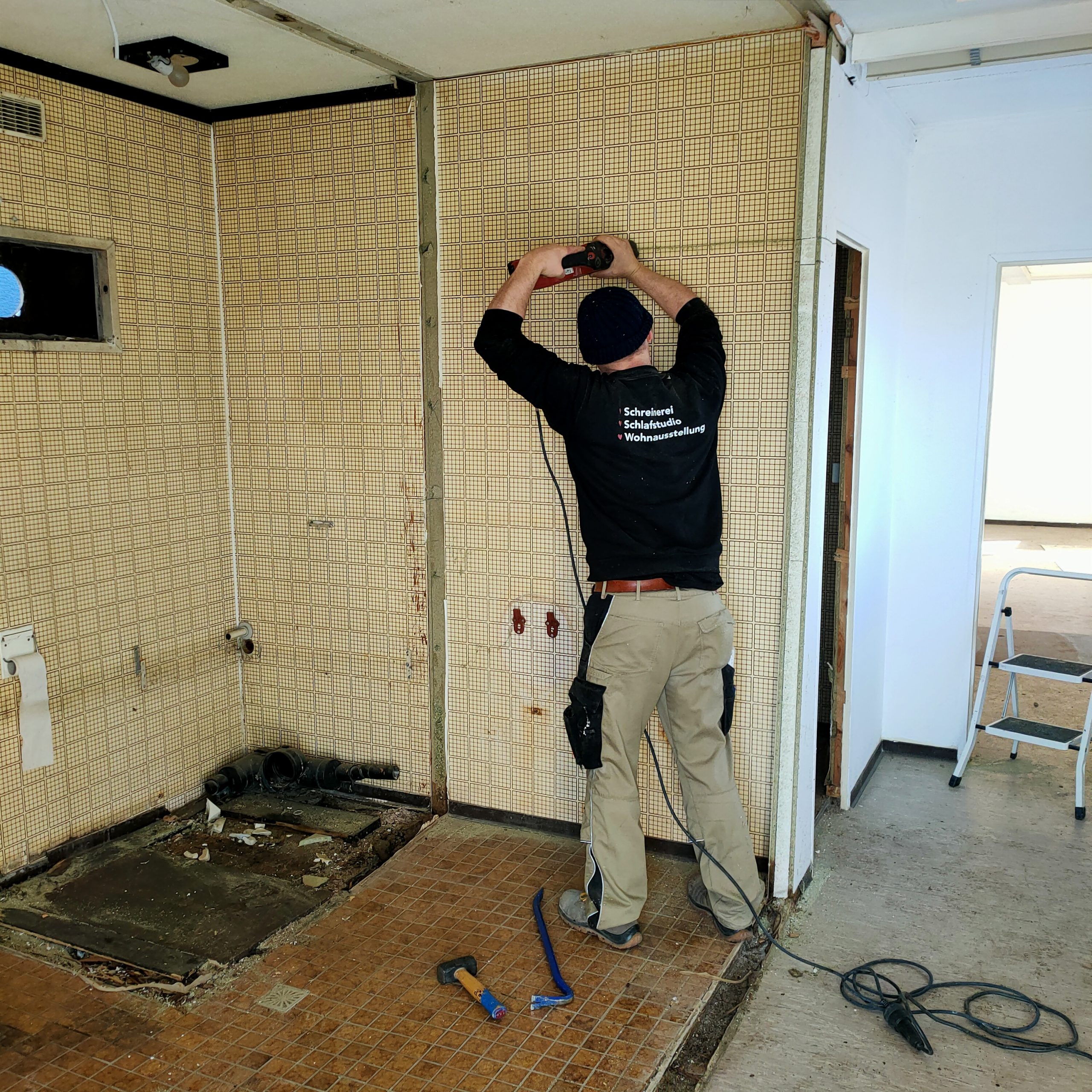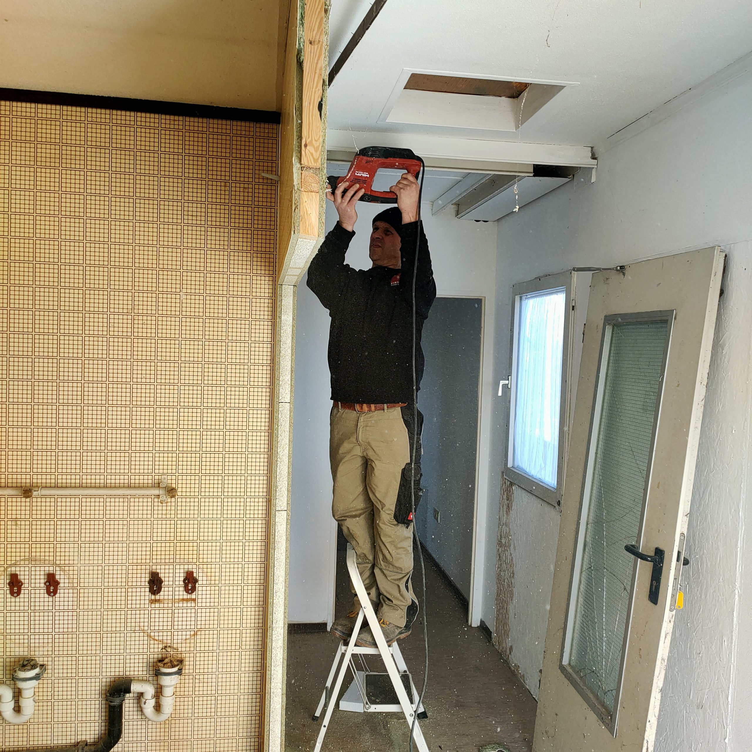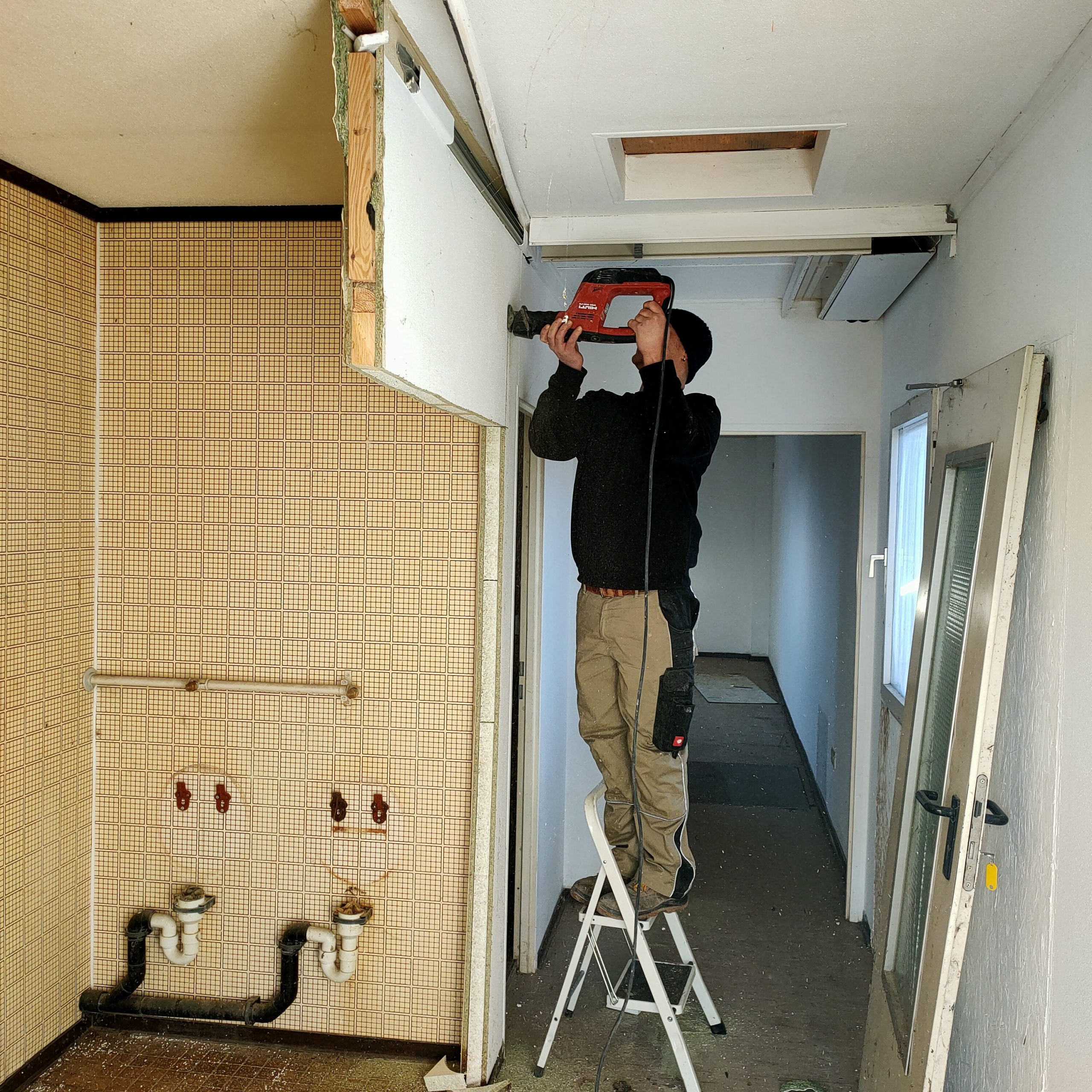 Am 11.02.22 wurde er mit einem 16m Tieflader und einem 50t Kran von Meißenheim Bauhof, nach Kürzell auf den Sportplatz gebracht. An einem ersten Samstag-Einsatz, wurden Wände entfernt die nicht benötigt werden und  ein Überblick vom Zustand und den weiteren Aufgaben gewonnen. Am Ende sollen in dem neu gewonnenen Objekt, 2 Umkleidekabinen und ein Duschraum entstehen. Auch wenn man natürlich auf einen baldigen Umbau des Sportheims hofft, ist dieses Projekt für die momentane Situation ein Glücksfall und die einzige gangbare Lösung. Zum Vergleich wurde auch bei einem Containerdienst, die Pacht eines Containers mit Dusche und Kabine angefragt. Der Preis hätte sich auf 35.000€ für 2 Jahre belaufen.