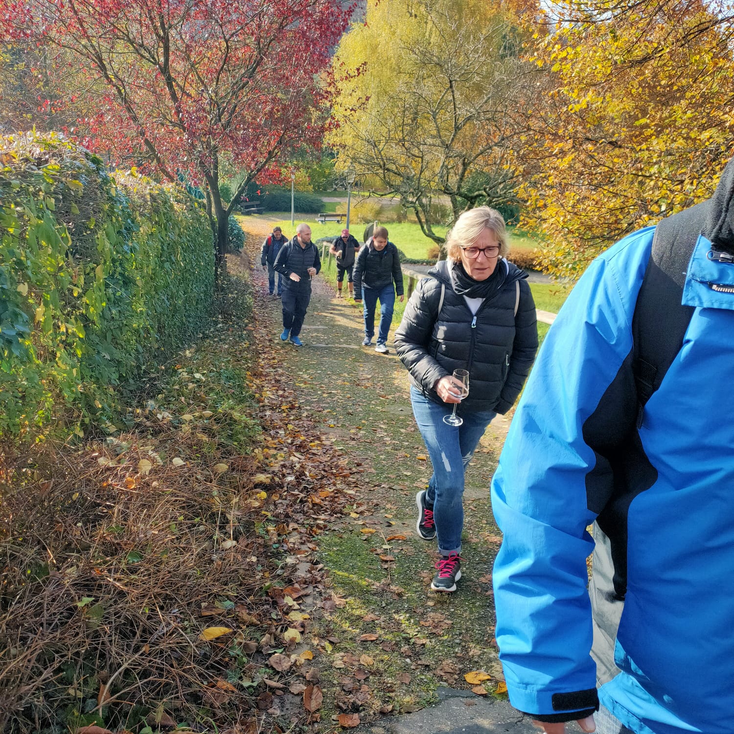 Die Vorstandschaft besuchte zur jährlichen Vorstandswanderung am 6.11.2021 Saschwalle. Der Tag begann mit einer Weinprobe inklusive Kellerführung bei Alde Gott und führte danach mit einer Wanderung am Bächlein entlang.